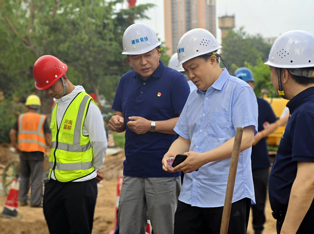 為深入開(kāi)展“安全生產(chǎn)月”相關(guān)活動(dòng),結(jié)合集團(tuán)公司“重大事故隱患專項(xiàng)排查整治2023行動(dòng)工作”。6月19日下午,鄭州市建設(shè)投資集團(tuán)有限公司(以下簡(jiǎn)稱集團(tuán)公司)黨委委員、副總經(jīng)理張巖和集團(tuán)公司經(jīng)營(yíng)部經(jīng)理劉勇一行到鄭州建投通訊管線有限公司(以下簡(jiǎn)稱管線公司)金水河沿線通信管道工程中嵩山路與金水河交叉口施工現(xiàn)場(chǎng)開(kāi)展安全生產(chǎn)檢查。