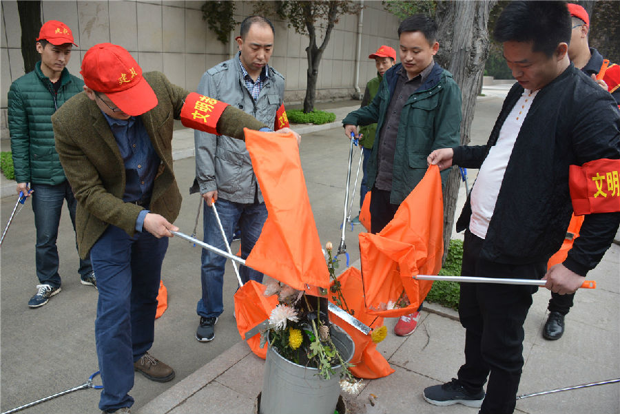三、開展“倡議文明緬懷,減少廢棄污染”拾撿垃圾志愿服務(wù)活動(dòng)。緬懷先烈活動(dòng)結(jié)束后,市建投公司志愿者們在烈士陵園內(nèi)開展“倡議文明緬懷,減少廢棄污染”拾撿垃圾志愿服務(wù)活動(dòng)。每位志愿者都手持垃圾鉗,認(rèn)真將散落在紀(jì)念碑前以及隱藏在雜草中的廢棄鮮花、飲料瓶、紙張等垃圾拾撿起來放入提前準(zhǔn)備好的垃圾袋中?;顒?dòng)持續(xù)一個(gè)小時(shí),志愿者們在祭奠先烈的同時(shí)以自己的實(shí)際行動(dòng)表達(dá)崇敬之情,并倡導(dǎo)以獻(xiàn)一束花、敬一杯酒、植一棵樹、清掃墓碑等方式寄托哀思,將祭拜逝者的傳統(tǒng)習(xí)俗以更加環(huán)保、健康、安全、文明的方式表達(dá),營造文明祭祀的良好氛圍。