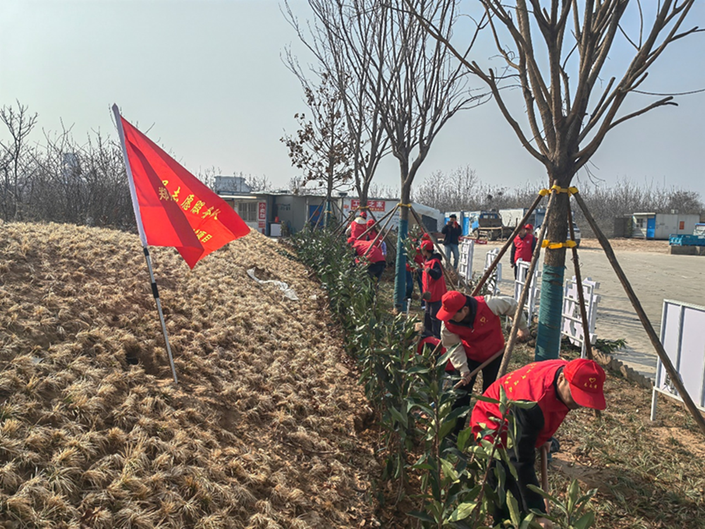 3月12日,陽(yáng)光明媚,春意盎然,黨員志愿服務(wù)隊(duì)士氣高昂,手拿鐵鍬、水桶、掃把等工具,熱情高漲地投入到植樹(shù)活動(dòng)中。