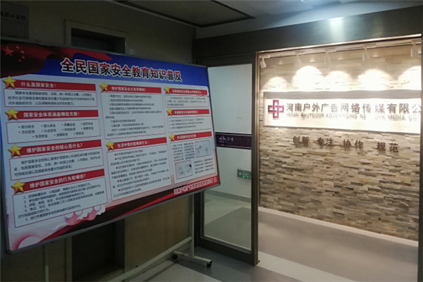 三、豐富活動形式,營造濃厚氛圍。集團公司有效運用集團公司官方網站、微博、微信、展板等集中宣傳國家安全教育活動相關內容,在辦公場所明顯位置設立宣傳展板三塊,廣泛宣傳國家安全相關法律法規(guī)和維護國家安全的基本知識,營造了良好的活動氛圍,不斷提高活動的影響力;各項目部、各控股公司分別結合實際,通過宣傳展板、宣傳條幅、電子海報,LED大屏循環(huán)、施工圍擋等多途徑宣傳國家安全教育活動,全面覆蓋集團全體職工、承建項目全體參建人員。本次宣傳有效覆蓋人數達到2000余人。